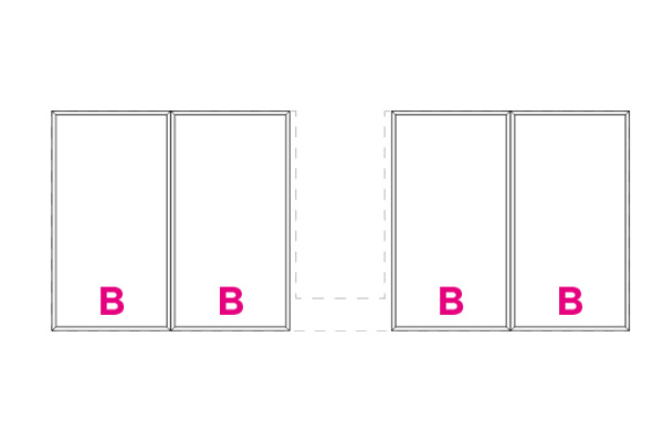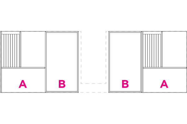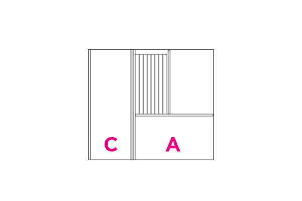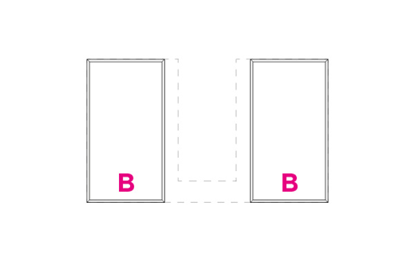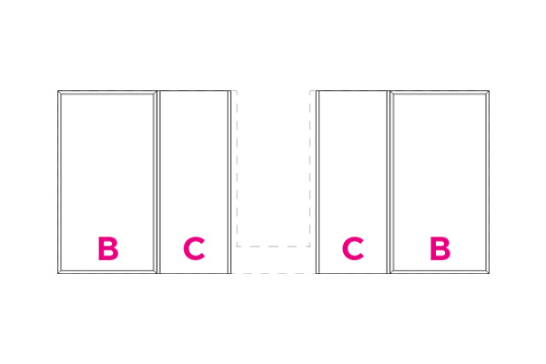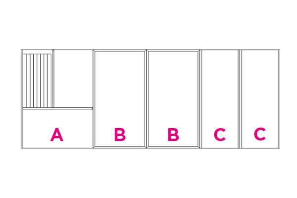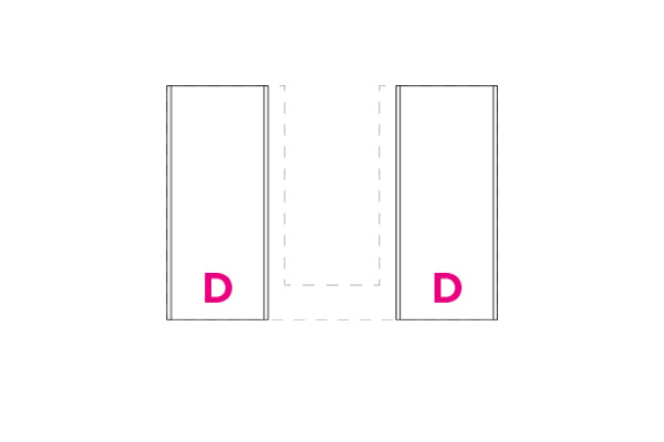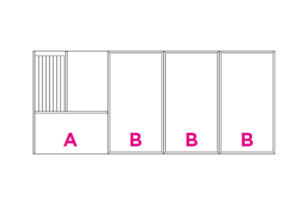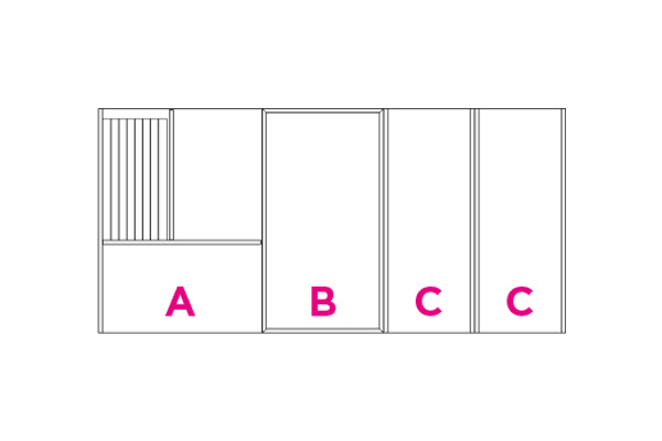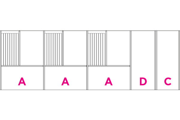 Partition elements in CDF carbon oak with visible black edge. Each set consists of the elements indicated by the letters A, B, C, and D. The type A partition includes a metal makeup holder.
