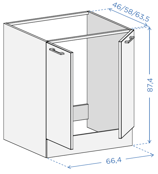 NOTE! If other elements are to be placed next to the washing machine base units, take the items H 73.4 cm and add the plinth H 14 cm (with a surcharge of 10% for each element).