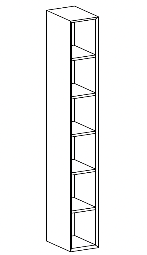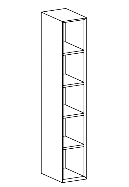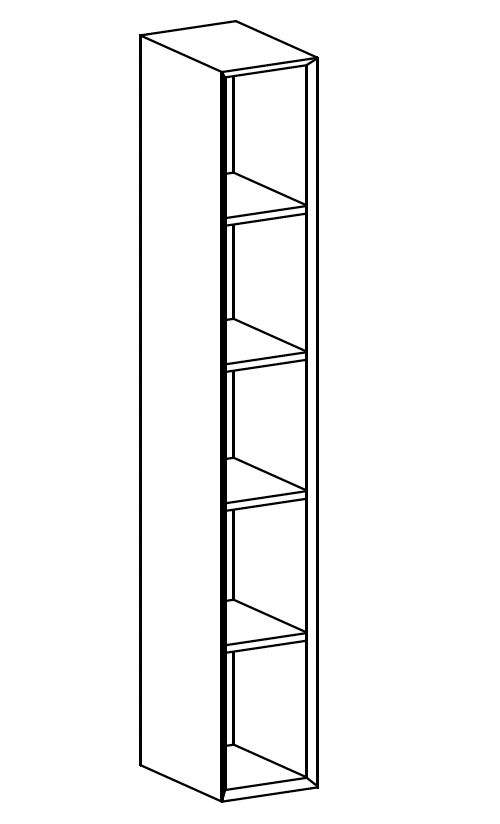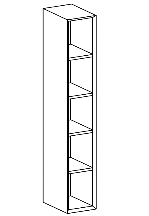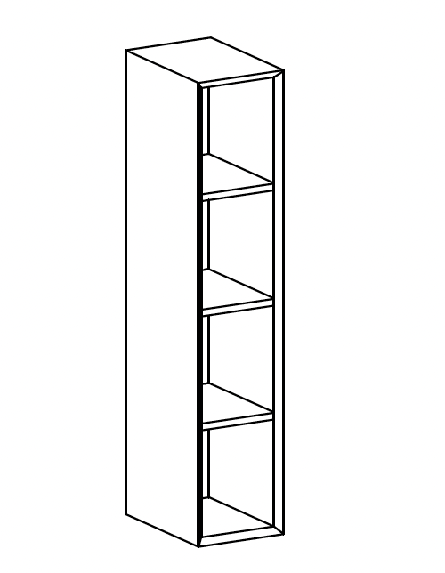 Open-fronted tall unit 1.2 cm thick with fixed wooden shelves (unit with folding top)