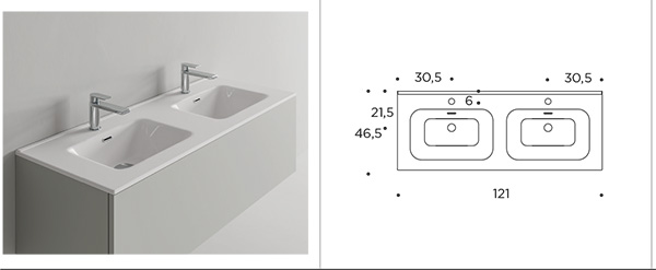 | FRIEND 121 DOUBLE Console washbasin in ceramic H 1.5. Hole for overflow. |