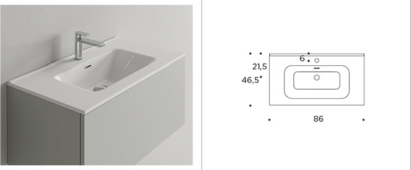 | FRIEND 86 Console washbasin in ceramic H 1.5. Overflow hole. |
