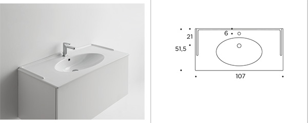 MELODY 107 Console washbasin in ceramic H 1.5. Hole for overflow and upstand on 3 sides.
