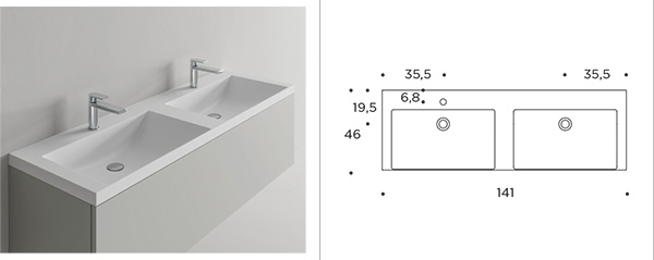 OLLY 121 DOUBLE Console washbasin in mineralguss / tekno H 4.5. Use with plug 5698/99/96.