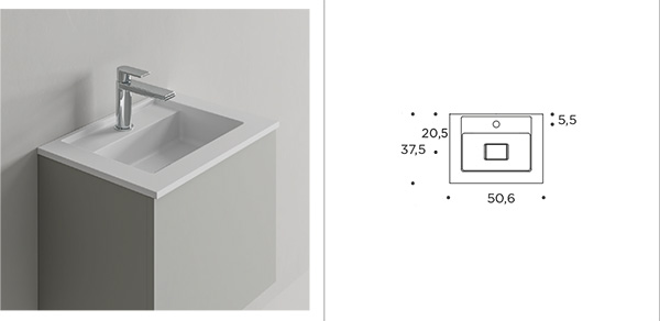 | Use for washbasin units W. 50 x D. 37 cm. |