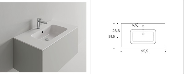 SUGAR 96 Console washbasin in mineralguss H 1.2. Overflow hole.