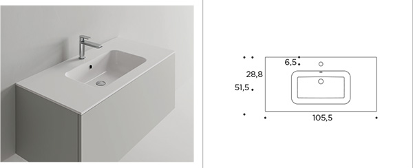 Use for washbasin units W 105 x D 50 cm W 70+35 x D 50 cm