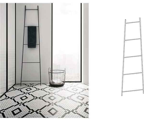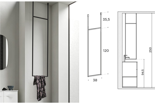 TOWEL RAIL IN ALUMINIUM Towel rail H 155.5 cm ceiling-mounted in 1.5 cm thick aluminium tubing