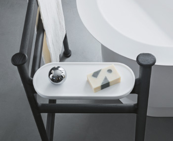 The Step towel rail can be accessorized with one or two Corian soap shelves that can be easily positioned in a snap.