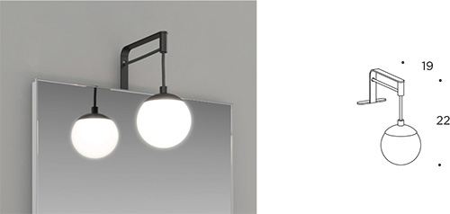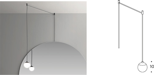 Pendant spotlight with LED light W. 10 x H. 10 cm. Includes two ceiling supports and cable W. 3 m. (complete with separate power supply). Finish nero.