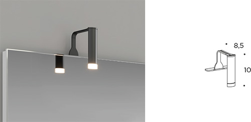LED spotlight W. 3 x H. 10 x D. 8.5 cm (complete with separate power supply). Finish nero
