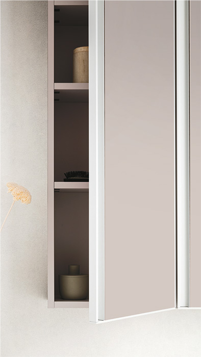 The wall units and tall units of the Absolute model have wooden shelves that can be repositioned in 3 positions.