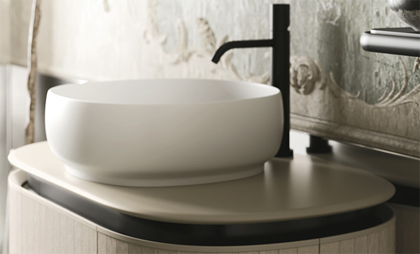 ALMOND 41 Countertop washbasin in tekno deimos bianco and tekno color. Use with plug 5698/99/96.