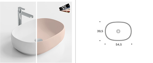 ALMOND 54 Countertop washbasin in tekno deimos bianco and tekno color. Use with plug 5698/99/96.