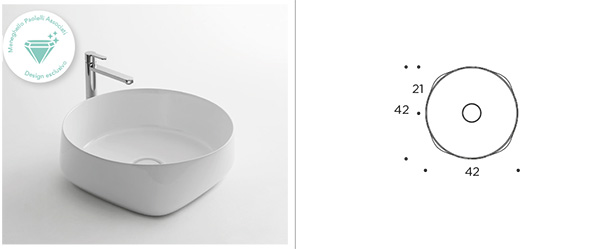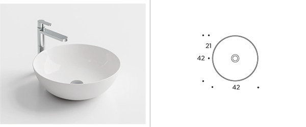 FINE 42 Countertop washbasin in ceramic. Use with plug 5698/99/94.