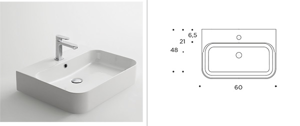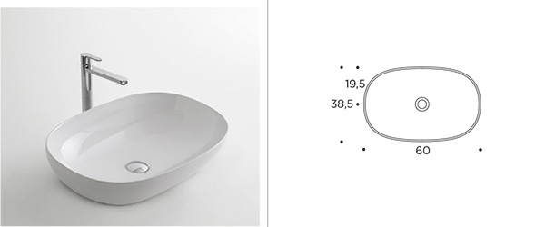 WONDER 60 Countertop washbasin in ceramic. Overflow hole.