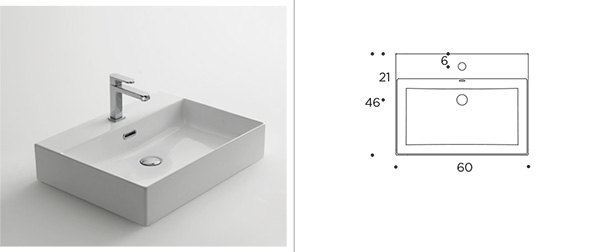 DELTA 60 Countertop washbasin in ceramic. Hole for overflow.