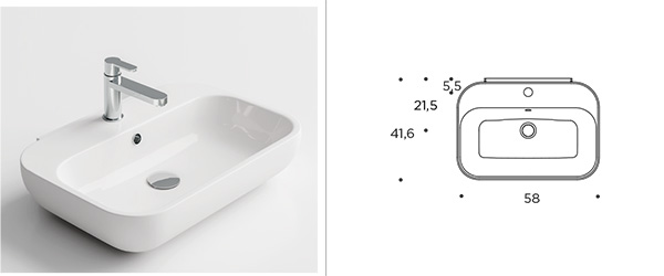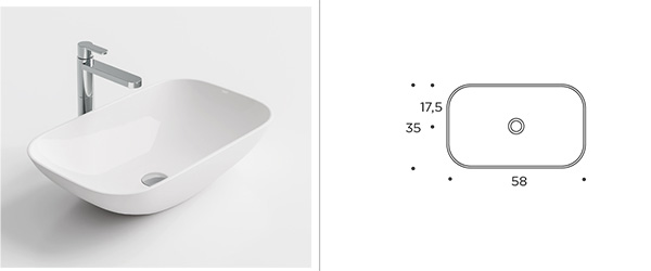 FINE 60 Counter op washbasin in ceramic. Use with plug 5698/99/94.