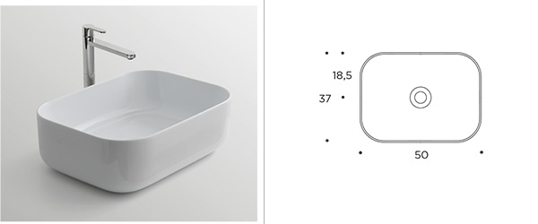 FINE 50 Counter op washbasin in ceramic. Use with plug 5698/99/94