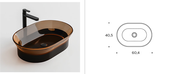 BRANDY 42 Countertop washbasin in acrylic and ocritech. Use with plugs 5698/99/96.