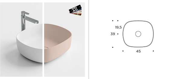 MILΓ™ 45 Washbasin entirely in bianco tekno deimos and tekno color. Includes S&G waste in finish.