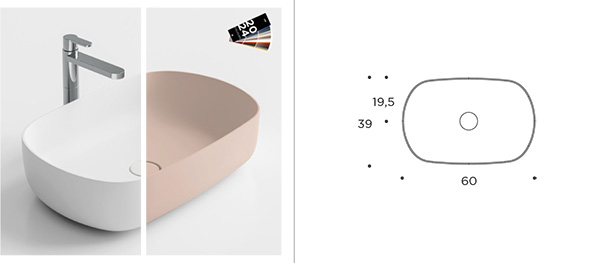 MILΓ™ 60 Washbasin entirely in white tekno, COLOR and Ecopietra. Includes S&G waste in finish.