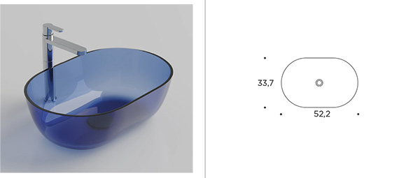 8 mm thick glass washbasin, satin on the outside and polished on the inside.