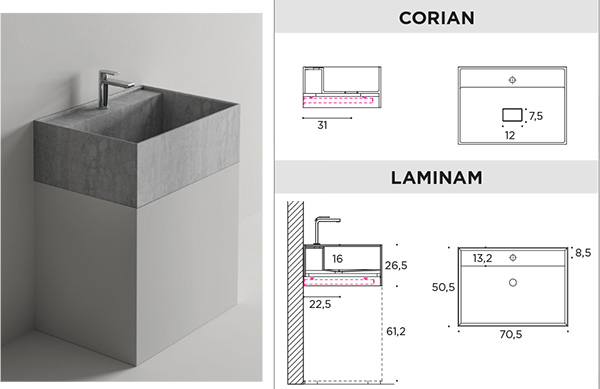 MANTRA TAILORED WASHBASINS in CORIAN, LAMIAM and GRES