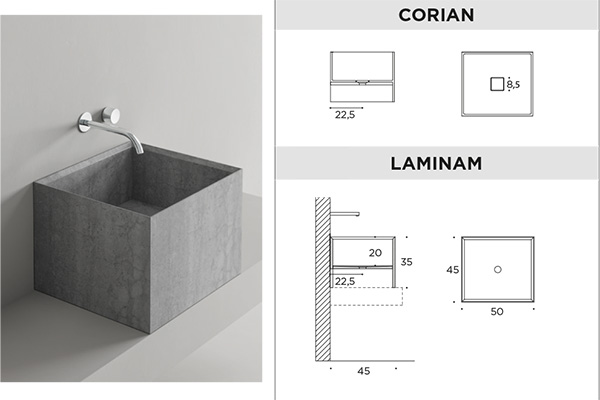 MANTRA TAILOR-MADE WASHBASINS in CORIAN, LAMINAM and GRES |