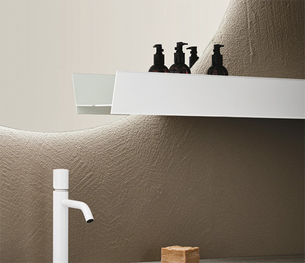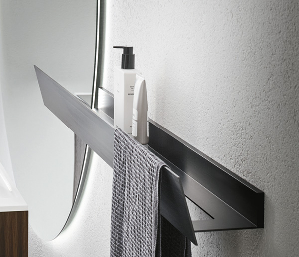 Slide-shaped shelves in aluminum with towel rail hole W 30 x D 4 cm right-left |