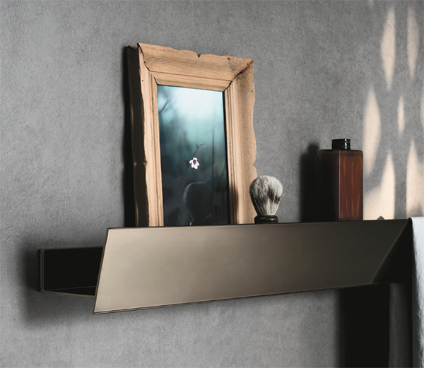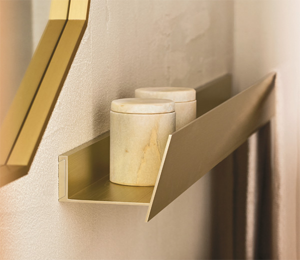 Slide shelves in aluminum with towel rail hole W. 30 x D 4 cm right-left |