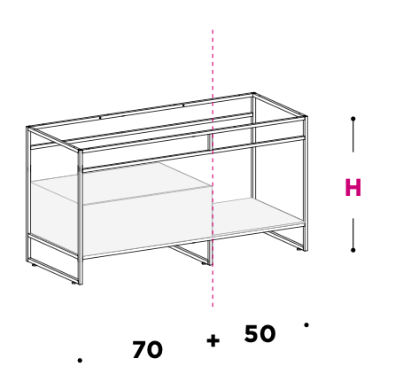 The right-left version of the ONE-PIECE UNIT MONO W. 123.2 cm has been designed to accommodate central base units of 50 or 70 cm.
