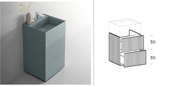 Monolite washbasin unit with 2 drawers