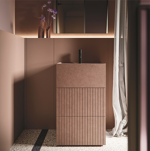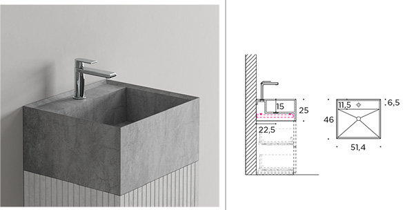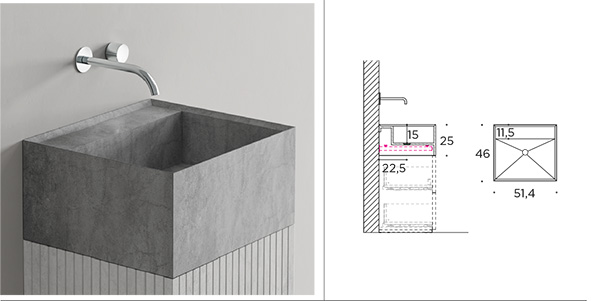 washbasin unit covered in 6 mm Laminam or gres