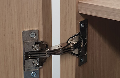 All Over elements have a body and fronts crafted at 45° and hinges equipped with a stop (89° opening) without a pin for 135° opening. The 45° craftsmanship is also visible on the upper part of the doors.