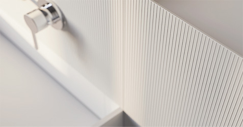 Plissé, a finish dedicated to the Over model, is made up of a particular 3D printing in relief with thin vertical lines. It is lacquered in all the colors of the Arbi color fan.