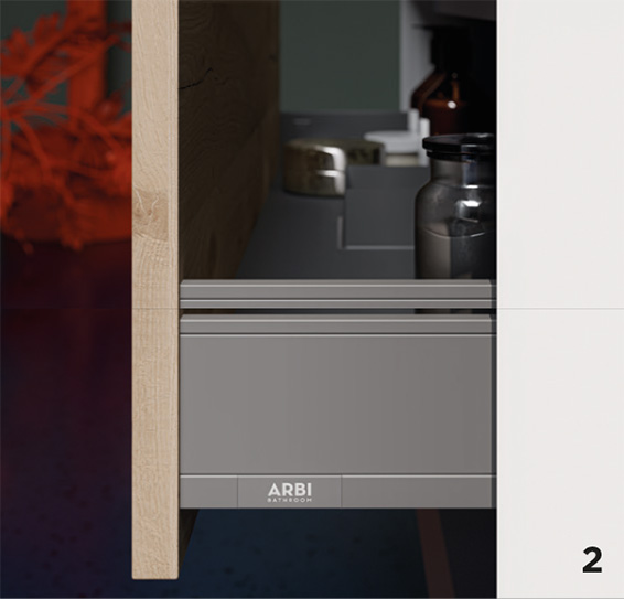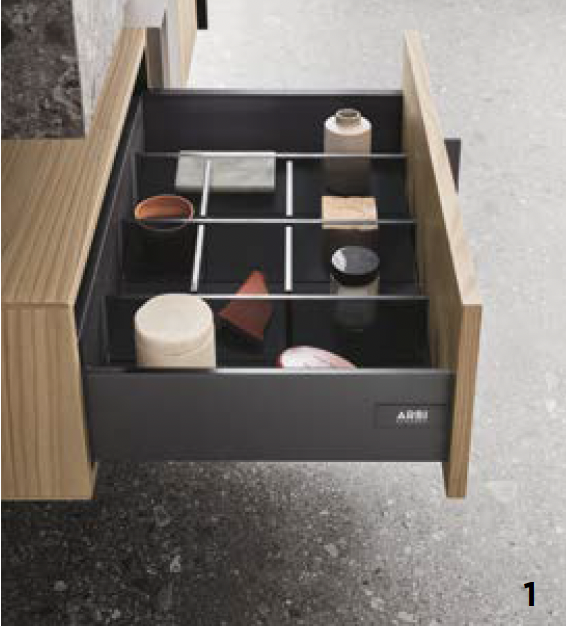 All drawers have customized plates with the Arbi logo.