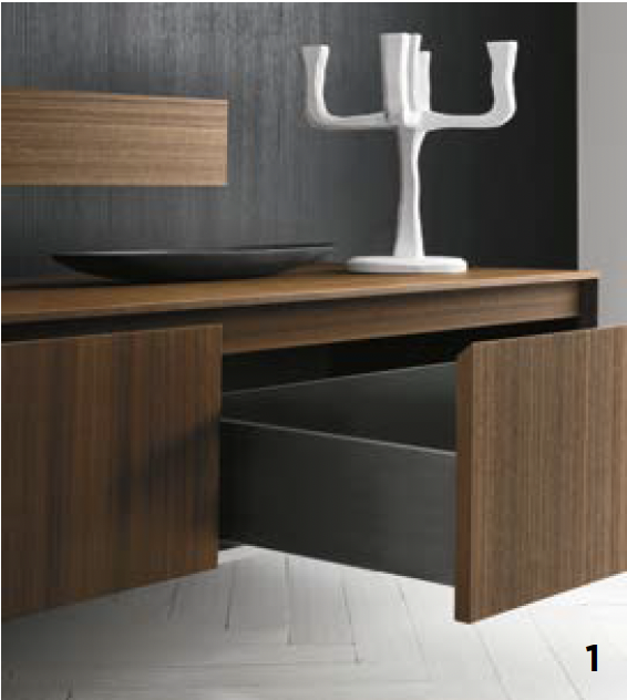 In the Sky, Street, Decor, Fusion, Sky Special, Street Special, Fold, Maison, Augusto, and Bonton models, the elements with drawers have Antaro internal sides in gray metal. All sides include the Blumotion closing system. This mechanism allows for the drawer to be pulled and guided, preventing abrupt closures.