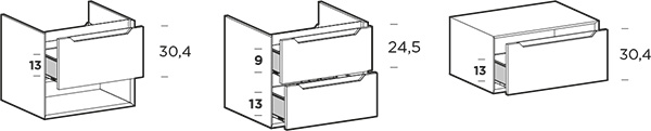 WASHBASIN UNITS and BASE UNITS: side (H 9/13 cm)