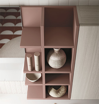 Wall-hung open compartment with 4-5 shelves. Right-left.