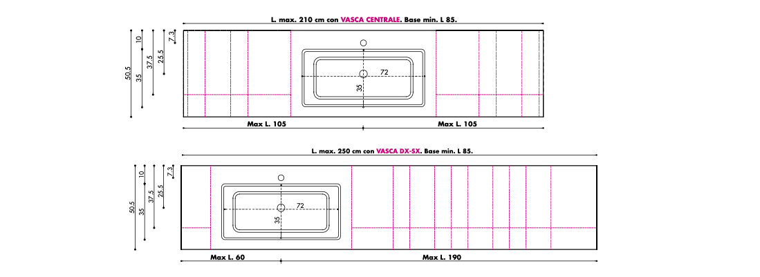 WIDTH TOP FOR SINGLE BASIN | ITEM | GLOSSY | SATINATED / SOLID GLASS |