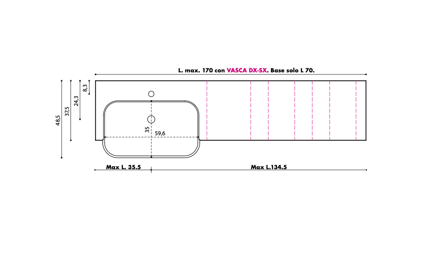 FOR UNIT FROM 70 TO 170 CM (min. base W 70 – only central basin)