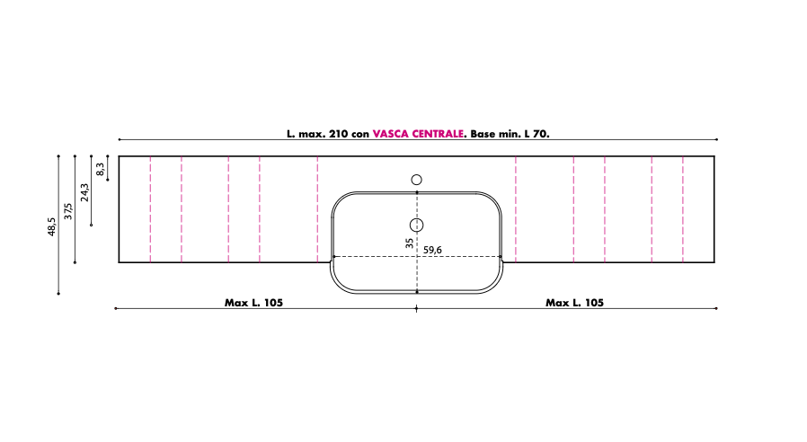 FOR UNIT FROM 171 TO 210 CM (min. base W 70 – only central basin)