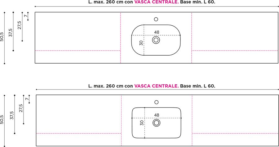 WIDTH TOP FOR DOUBLE BASIN | ITEM | TEKNO DEIMOS BIANCO | TEKNO COLOR |