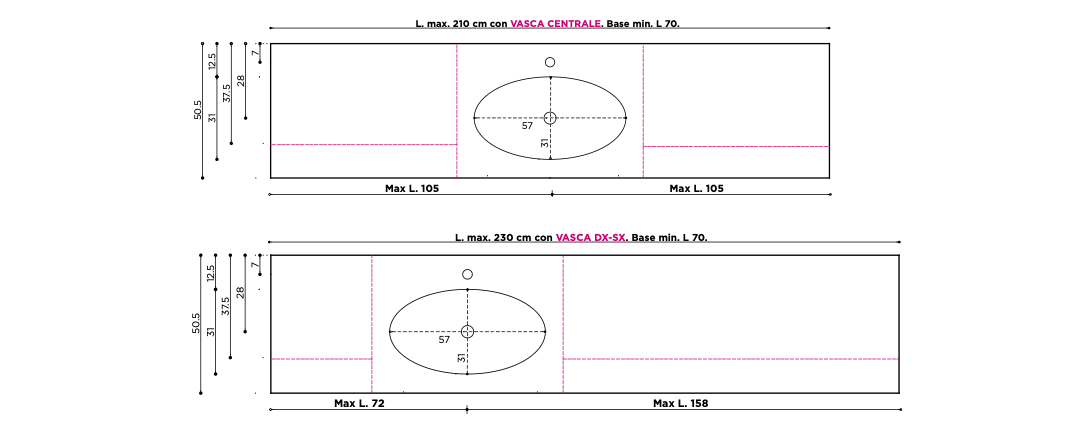 WIDTH TOP FOR SINGLE BASIN | ITEM | GLOSSY | SATINATED / SOLID GLASS |