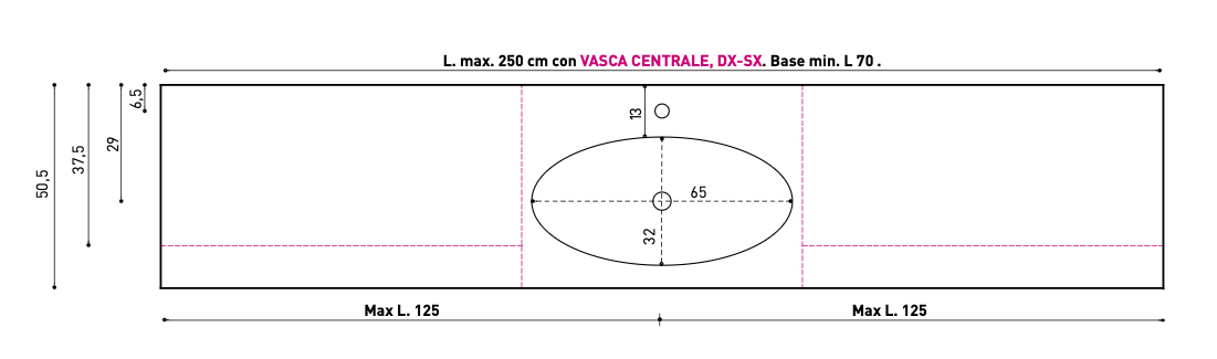 company produces as standard the tops for washbasins with 1 hole for the mixer positioned behind the washbasin. Please always provide all the indications regarding the position of the hole for the mixer, especially when the tap is wall-mounted.