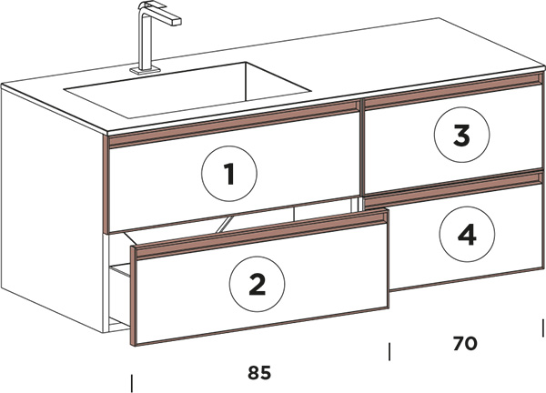 Vanity unit W 85 x H 49 x D 50 lacquered matt: