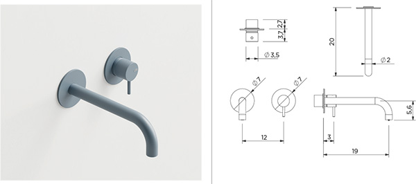 Wall-mounted two-hole mixer with spout W. 19 cm mandatory use with built-in unit G005