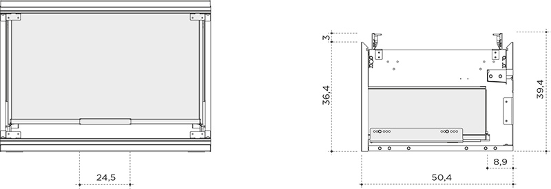 REMAINING SPACE BETWEEN DRAWER’S SIDES AND WALL: