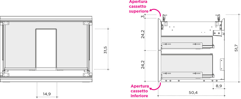 demand, by indicating it in the order, it is possible to request the drawer without shaping (whole drawer) or with off-center shaping.