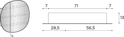 Black metal structure L 71 x H 46 x D 13 cm. Includes glass internal shelf, light 3000 K, shuko socket. 1 fixed door L 28.5 + right door L 56.5 cm. Compatible with Ellipse maxi spotlight. |